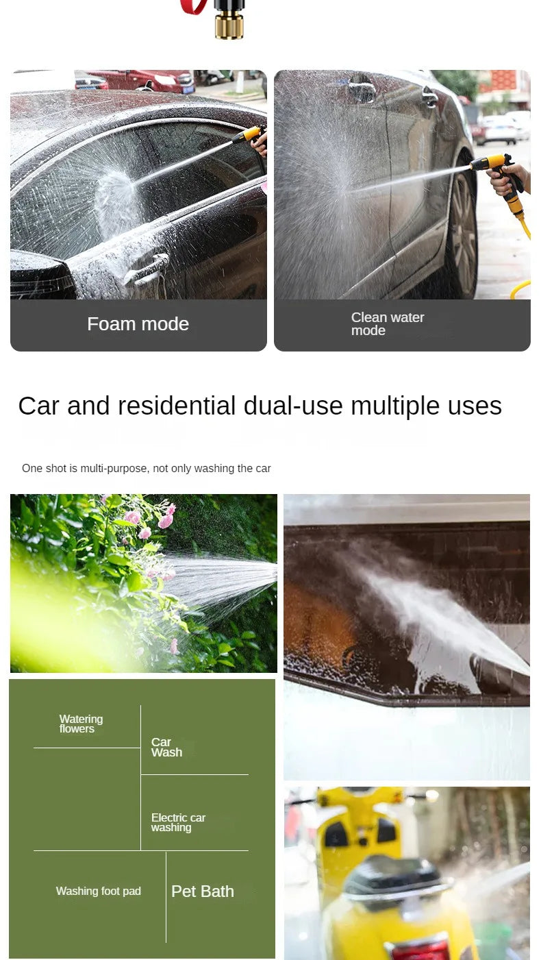 - ✓ 8-Pattern High-Pressure Nozzle – Professional spray gun with multiple settings for car washing, garden watering, and outdoor cleaning