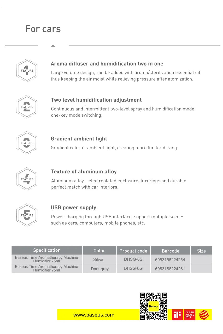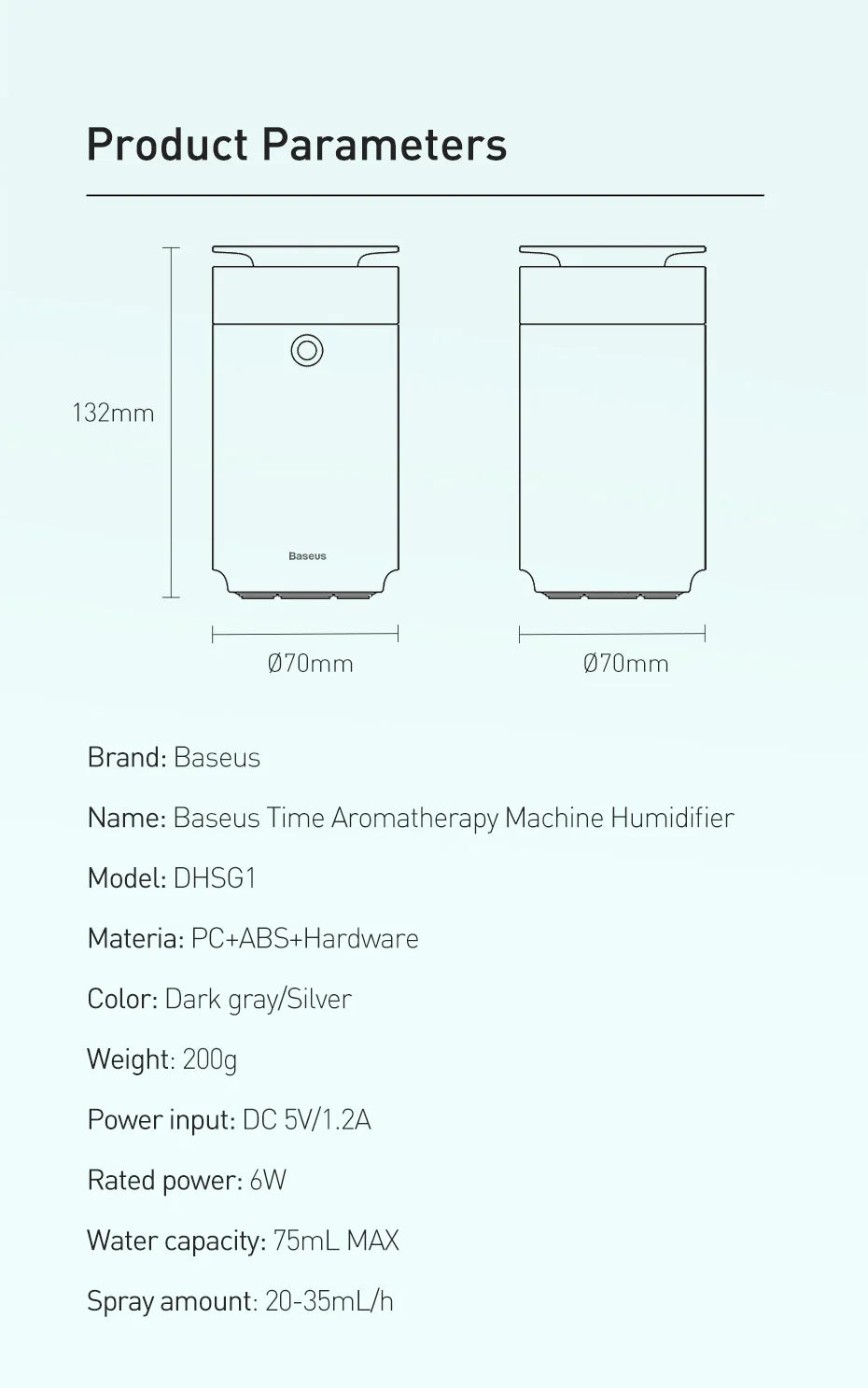 Transform your car into a relaxing sanctuary with this sophisticated Baseus aroma diffuser. Combines air purification, humidification, and ambient LED lighting for the ultimate driving experience.